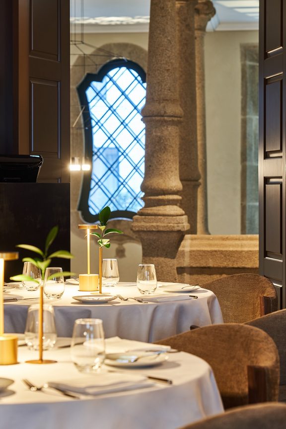 Built from a 500-year-old small palace, the façade keeps the large wooden doors, the large windows surmounted by triangular pediments, wrought iron balconies and stonework emblazoned with a 16th-century coat of arms; Samuel Torres de Carvalho, the hotel’s architect, sought out to protect the origins of the building while also "contemporizing" it.