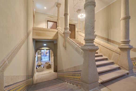 The old stables have been transformed into the hotel entrance. The floor and staircase have been revived and the original granite slabs remain. The hotel is adorned with other odes to the past including tiles, windows, original stone decorative motifs and an old kitchen oven that connects the mansion building to the hotel's new wing. Accommodations include 55 rooms in the new building and 11 in the old mansion. Seven room types are available for different experiences, offering beds (most over six-feet wide), and all the PortoBay amenities. Large windows and balconies available on the upper floors offer views of restored houses, including Porto Cathedral, which extends down to the Douro River.