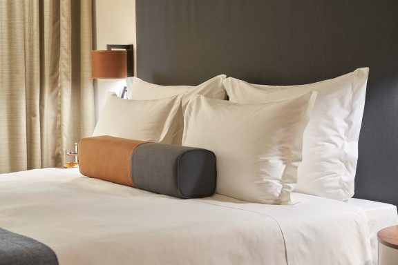 The rooms are all spacious and come clad in blues and browns with lots of wood. Bathrooms have tubs and rain showers and Aromatherapy Associate amenities. Beds are particularly comfortable with high thread count cotton sheets.