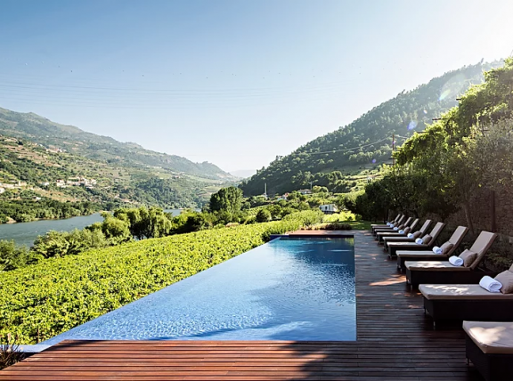 This small and quaint property, situated in the heart of the Douro region of Portugal, boasts a farm-to-table restaurant, where a set menu is prepared nightly. Guests are also treated to a daily breakfast of fresh breads, fruits, sliced meats and locally-produced honey; all of which is impeccably presented. An outside terrace overlooking the river is perfect for afternoon lemonade or pre-dinner drinks. Deck chairs around the infinity pool enable sunbathers to enjoy the mountain vistas and the boats cruising down the Douro River. In the evening a family room offers warmth from the fireplace and games for entertainment.